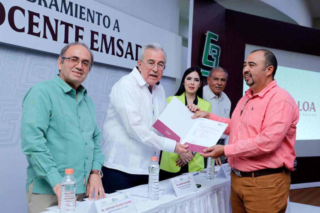 Al realizar la entrega, el mandatario estatal destacó que esto es parte de la justicia social que les da certidumbre laboral para las y los docentes.