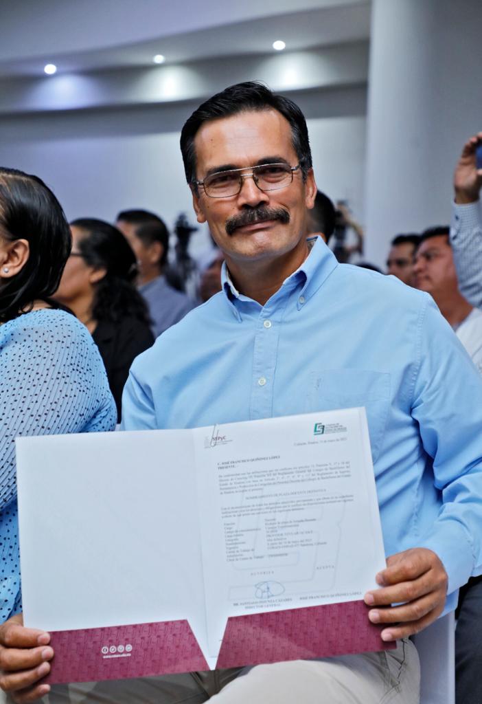 En el lugar se realizó la entrega simbólica a dos representantes por área, los cuales fueron Alma Guadalupe Quintero Ramos y Edén Emmanuel Piña Aguirre de la zona 01, para la zona 02 fueron Santa Quiñonez Zúñiga y Adalberto Rodríguez Vea, de la zona 03 Indira Zuling Vea López y César Octavio Angulo Aguilar, de la zona 04 Silvia Maritza Delgado Nieblas y Jesús Eduardo López Ortega, mientras que en la zona 05 fueron Ana Isabel Magaña Gutiérrez y Mario Alberto Vega Cordero, quienes recibieron los nombramientos simbólicos de estas plazas definitivas.