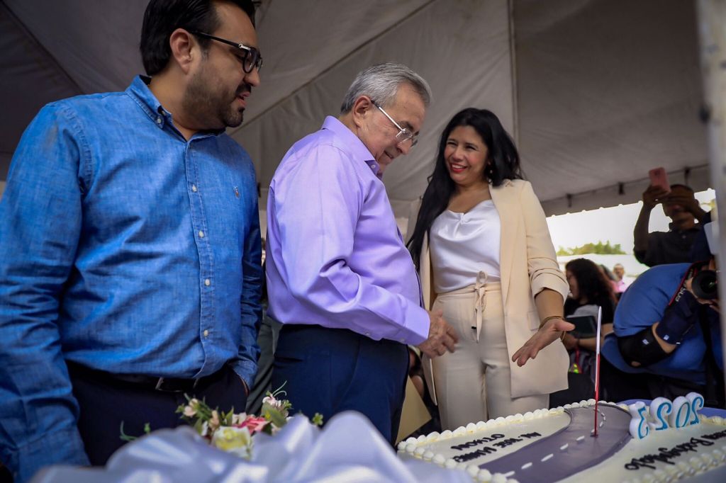 La gira de trabajo inició en la colonia Nuevo Bachigualato, donde los vecinos recibieron al gobernador Rocha con grandes muestras de agradecimiento ya que es la primera calle que tienen pavimentada, y como detalle le prepararon un pastel de gran tamaño con la figura de la calle Manuel J. Othón, que fue precisamente esta primera obra. Posteriormente, en la colonia Lombardo Toledano, el mandatario estatal inauguró de manera simultánea las calles Antonio Serrano y Francisco Solís, todas de concreto hidráulico y con los trabajos de reposición de tuberías de agua potable y drenaje sanitario.