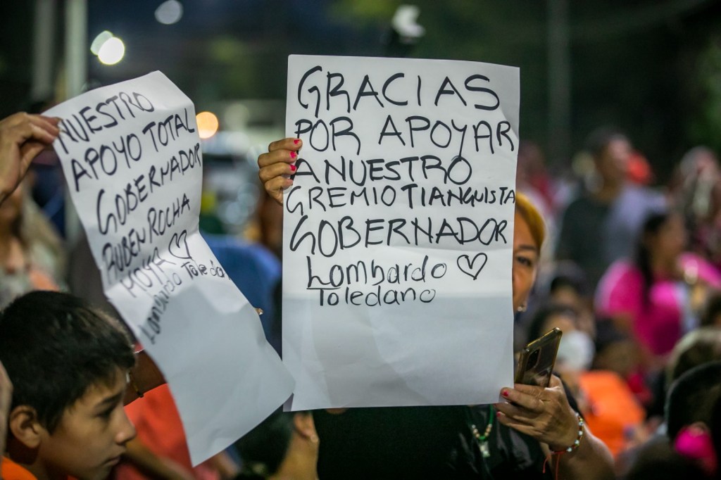 Además, durante su visita a la colonia Lombardo Toledano, el mandatario estatal atendió la petición de los colonos de la calle Rey Melchor, ya que en pasadas administraciones aportaron recursos económicos propios para que se les pavimentara su calle, lo cual no ocurrió y ni tampoco recuperaron su dinero.