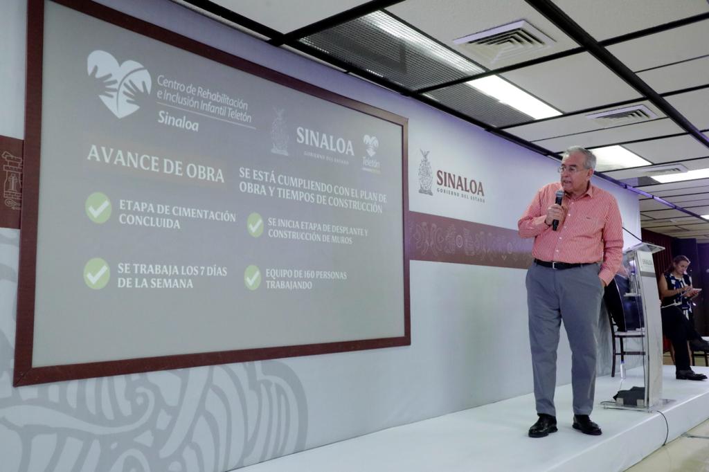 Culiacán, Sinaloa, a Mayo de 2023.- Enfatizando el valor simbólico de esta obra, que representa la generosidad de las personas que apoyaron para iniciar su construcción, esta mañana el Gobernador Rubén Rocha Moya reiteró durante su Conferencia Semanera el compromiso de inaugurar el Centro de Rehabilitación e Inclusión Infantil Teletón Mazatlán el próximo mes de noviembre, tal como se tiene previsto desde la colocación de la primera piedra el pasado mes de marzo.