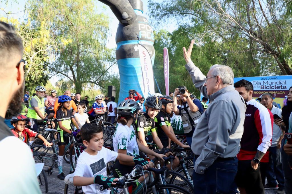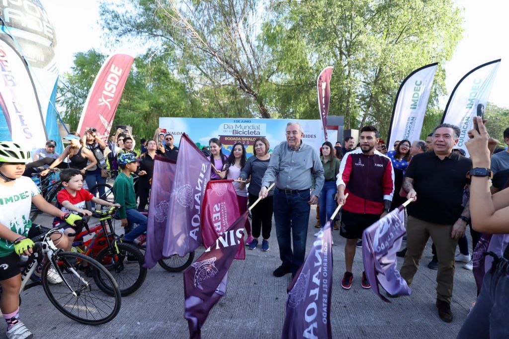 Culiacán, Sinaloa, junio del 2023.- Como parte del Día Mundial de la Bicicleta y con el objetivo de promover su uso y visibilizar la importancia de este medio de transporte para crear conciencia sobre los derechos de los ciclistas, el gobernador Rubén Rocha Moya dio el banderazo de inicio al evento deportivo Rodada Sinaloa 2023, el cual tuvo como punto de arranque el estacionamiento del Parque Acuático Tres Ríos.