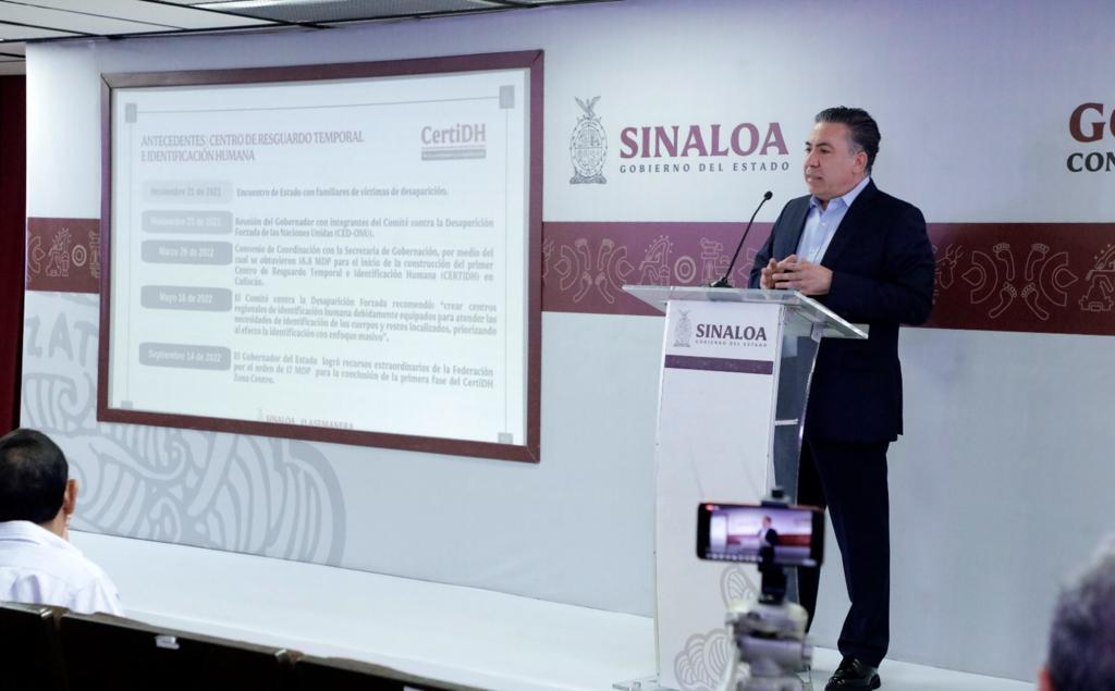Culiacán, Sinaloa, a junio de 2023.- En atención a las recomendaciones del Comité contra la Desaparición Forzada de las Naciones Unidas (CED – ONU) y a las solicitudes de los diversos grupos organizados de personas con familiares desaparecidos a nivel estatal, esta mañana el Secretario General de Gobierno, Enrique Inzunza Cázarez, dio a conocer en el marco de la Conferencia Semanera que el Centro de Resguardo Temporal e Identificación Humana de Culiacán (CertiDH), ya está terminado y se está en proceso de equiparlo para que esté en posibilidad de iniciar operaciones a más tardar el próximo mes de agosto, lo cual representa una inversión mixta de 86 millones de pesos, entre recursos federales y estatales, destacando además que está por iniciar la construcción de un segundo centro en Los Mochis, para atender la zona norte del estado.