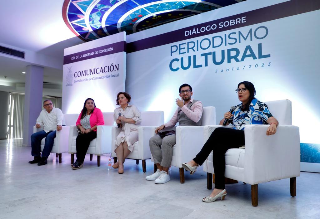 «En este Día de la Libertad de Expresión, el Gobierno del Estado ha querido dedicar este diálogo de experiencias compartidas al ejercicio de este preciado sector periodístico como es el cultural, con todos sus géneros de noticia, entrevista, opinión, artículo de fondo, reportaje, semblanza, crónica, cada uno tan valioso como el que antecede», expresó Adriana Margarita Ochoa del Toro, titular de la Coordinación de Comunicación Social, al brindar la bienvenida al evento.