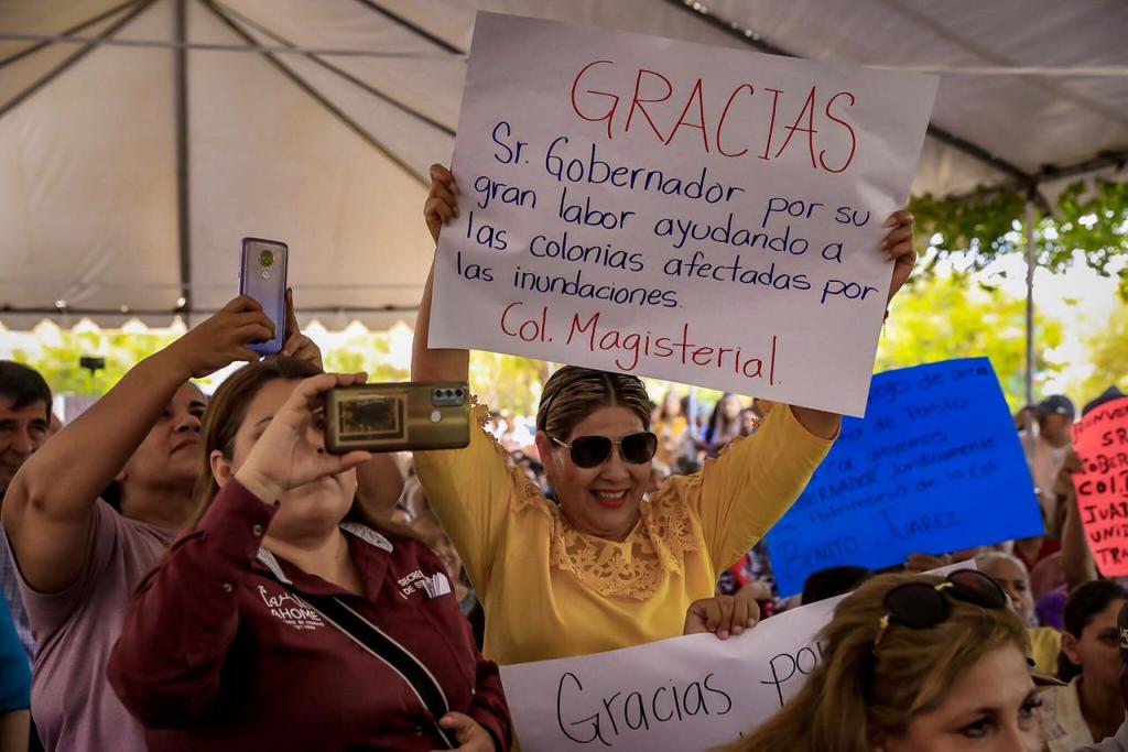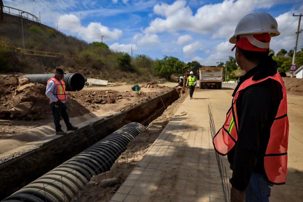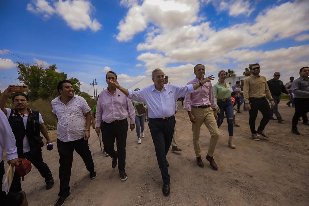 El mandatario estatal arribó primeramente a la colonia Benito Juárez, en la ciudad de Los Mochis, acompañado por el presidente municipal, Gerardo Vargas Landeros, para supervisar la construcción del colector de drenaje pluvial al pie del Cerro de la Memoria, y desde ahí inaugurar simultáneamente un paquete de 27 obras que fueron concluidas recientemente, como son 14 pavimentaciones, entre ellas la calle Pablo Guelatao, donde fue el evento, así como 7 obras de drenaje sanitario, 3 de agua potable, y 3 rehabilitaciones de drenajes colapsados.