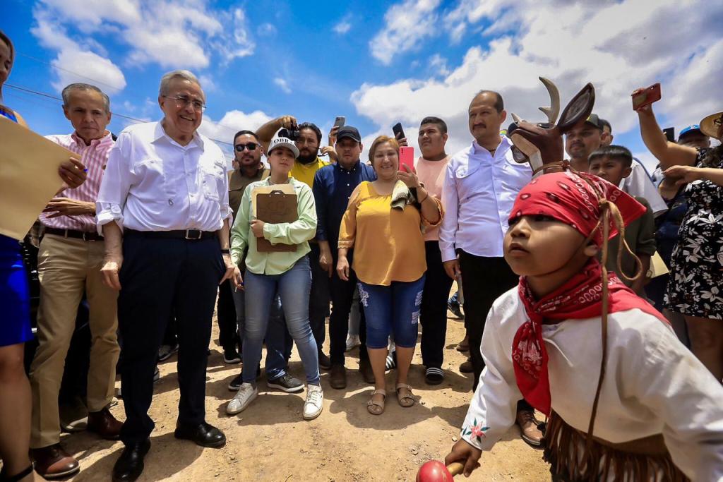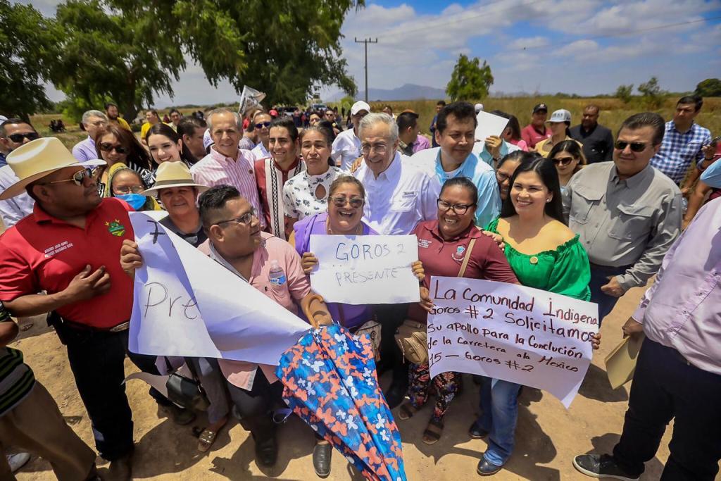 Ejido Vallejo, Ahome, Sinaloa, a junio de 2023.- Como parte de una intensa jornada de trabajo, el gobernador Rubén Rocha Moya visitó el municipio de Ahome, para inaugurar un amplio paquete de obras sociales tanto en la ciudad de Los Mochis, como en distintas comunidades, principalmente dos obras muy sentidas, como fue la carretera al ejido Plan de Guadalupe, que era una petición desde hace 53 años, y la carretera de Bagojo Colectivo a Vallejo, esta comunidad indígena yoreme, y que en total representaron una inversión de 167 millones de pesos.