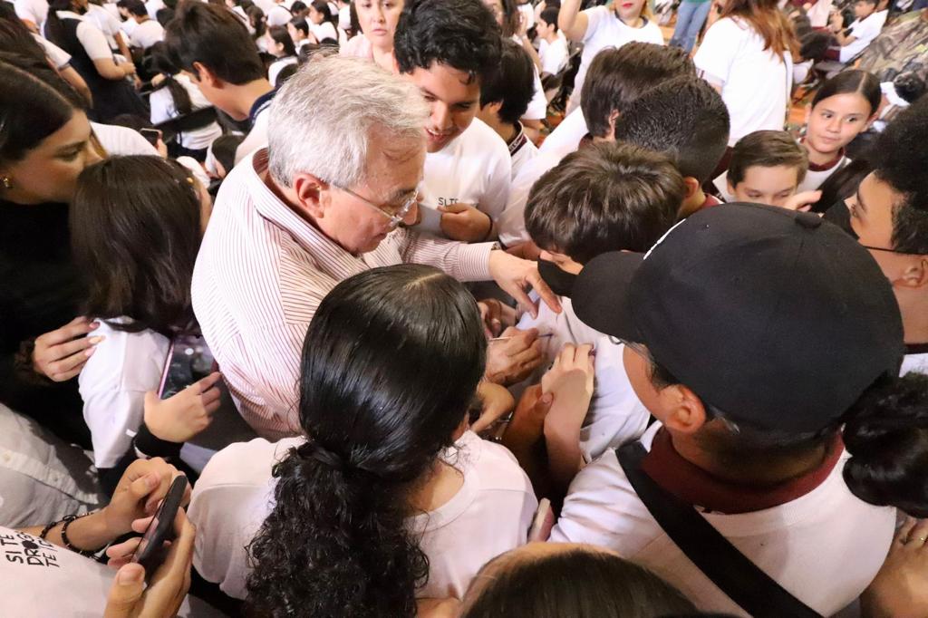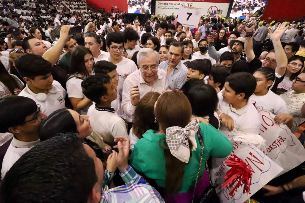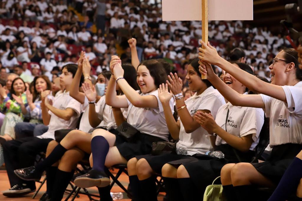 Culiacán, Sinaloa, a junio de 2023.- Con el Polideportivo Juan S. Millán a su cupo máximo por la presencia de 2000 jóvenes estudiantes de múltiples instituciones de educación pública, este sábado el Gobernador Rubén Rocha Moya dio inicio en Sinaloa a la Jornada Nacional de la Estrategia en el Aula «Si te drogas te dañas», cuyo objetivo es generar un espacio de convivencia entre alumnos de nivel secundaria y media superior, autoridades gubernamentales y educativas para crear consciencia del consumo de drogas y los daños que ocasionan, así como fomentar el desarrollo de habilidades de autocuidado, y toma de decisiones asertivas, para lograr estilos de vida saludables.