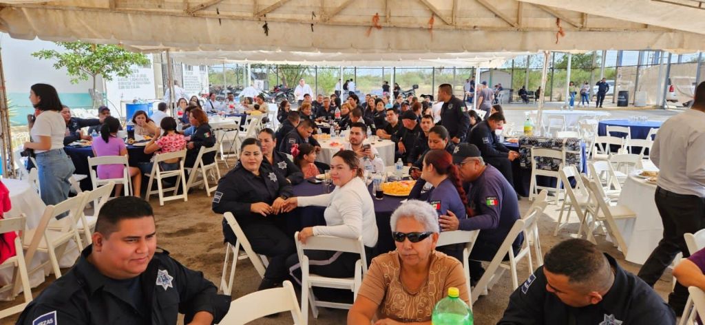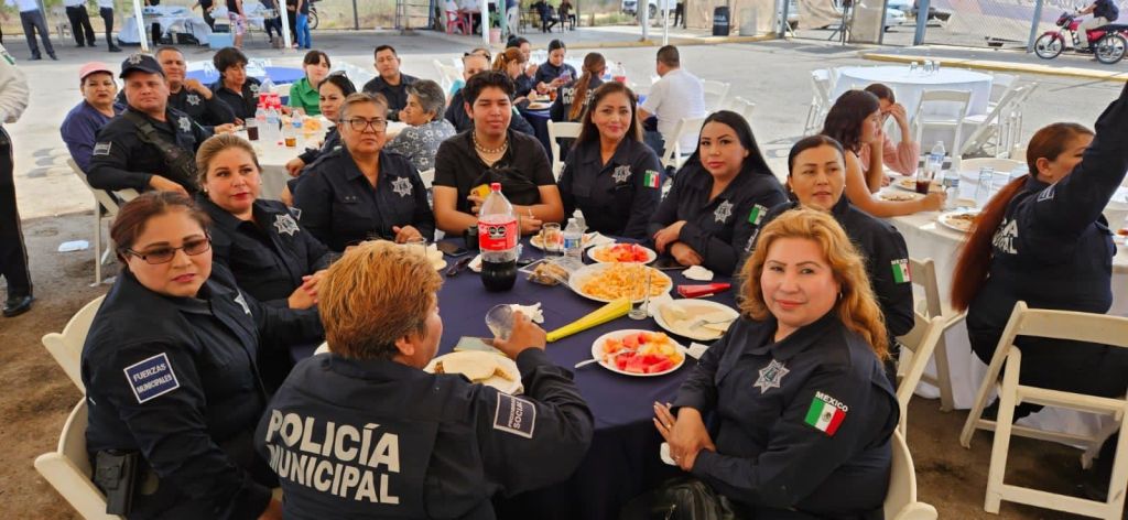 Los elementos de la Dirección de Seguridad Pública y Tránsito Municipal estuvieron acompañados por familiares y amigos, para dar gracias a Dios por un festejo más.