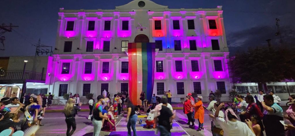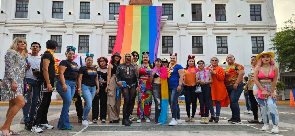 La Alcaldesa de Navolato Margoth Urrea Pérez, marchó con todos hasta el palacio municipal, donde hicieron ondear la bandera del arcoíris y encendieron las luces del ayuntamiento también con los colores que identifican a la comunidad LGBTQ+.