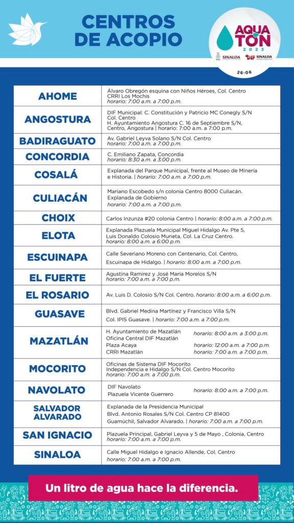La invitación es para todos los sinaloenses nos unamos y donemos agua para consumo humano.