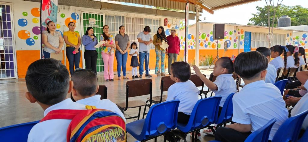 Estuvieron presentes el Director de Desarrollo Social y Humano, Profesor Manuel Alfredo Quevedo Solís, Directora de Obras Públicas Senllace Arely Sánchez Salazar, directora Evangelina Cano Mejía, maestra Petrys Beltrán, representante del cuerpo docente, la alumna María Alicia Valenzuela López en representación de los estudiantes, la presidenta de participación social, Sra. Selene Embila Valdez, regidores, maestros, estudiantes, padres de familia y servidores públicos.