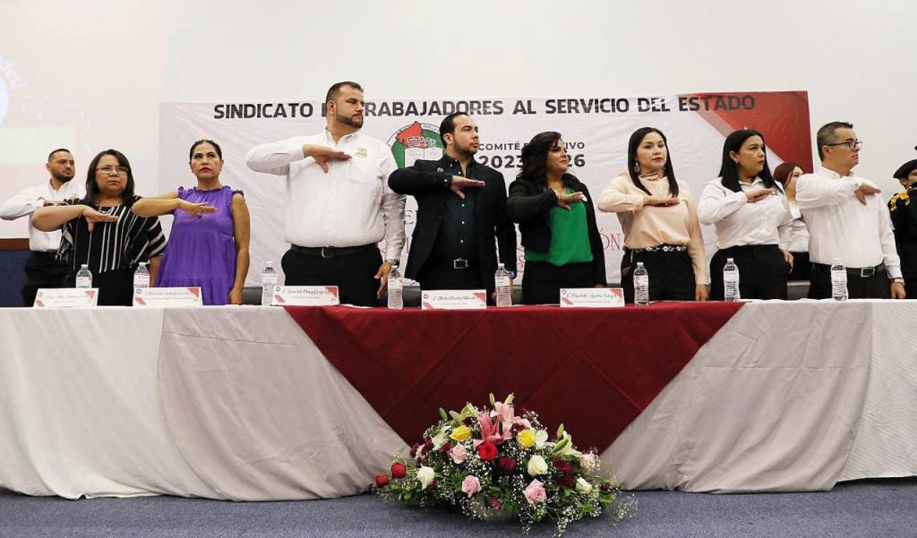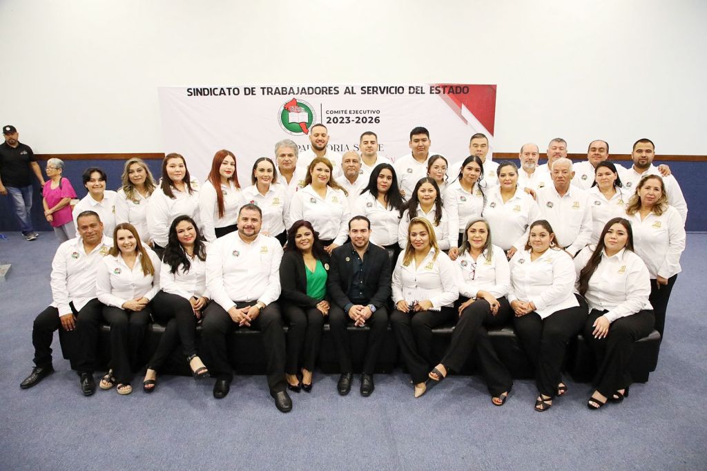 Por parte del Comité Ejecutivo, Francisco Javier Castilla Esparza, secretario de organización del STASE; Leonardo Pérez González, secretario de formación sindical del STASE y Flor Ángel Cárdenas García, secretaria de Pensiones y Jubilaciones; Nohemí Cárdenas Hernández, secretaria de acción social y Lourdes Martina Machado Niebla, secretaria de acción para las mujeres.