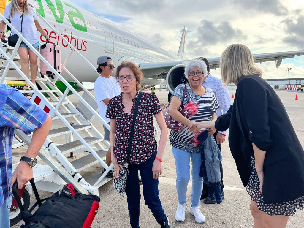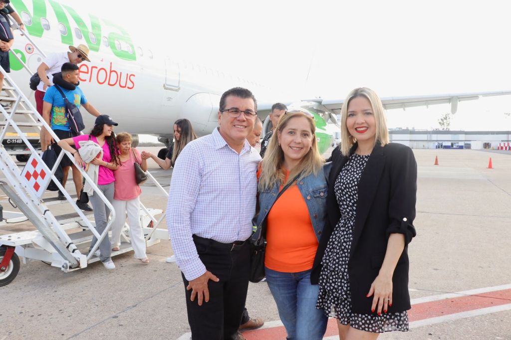 Al participar en la ceremonia de inauguración en el Aeropuerto Internacional “Rafael Buelna”, y dar la bienvenida a los pasajeros, acompañada del Alcalde Édgar Gonzáles Zataráin, la Secretaria de Turismo, Estrella Palacios Domínguez, señaló que este primer viaje llegó con 203 pasajeros, y es parte de la nueva oferta de conectividad con la que contará el Estado a partir de julio.