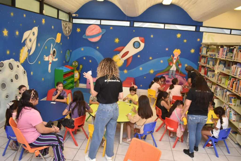 Culiacán, Sin., a julio de 2023.- Un numeroso grupo de niñas y niños asistieron al inicio del taller de verano ‘Paleta de colores’ en la biblioteca “Rosa María Peraza” para divertirse y aprender sobre la importancia de los colores y las emociones.