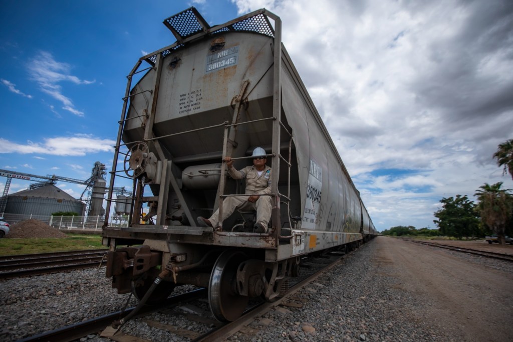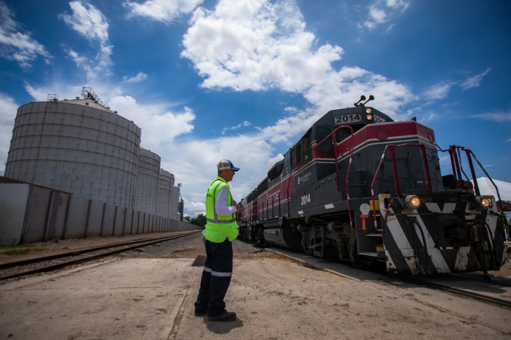 Navolato, Sinaloa, a julio de 2023.- En compañía del director general de Seguridad Alimentaria Mexicana (SEGALMEX), Leonel Cota Montaño, el gobernador Rubén Rocha Moya dio el banderazo de salida a un tren que desfogó las primeras 9 mil toneladas de maíz de una bodega de Navolato, las cuales serán distribuidas en los almacenes de DICONSA para abastecer las diferentes tiendas que hay en el centro y sureste del país.
