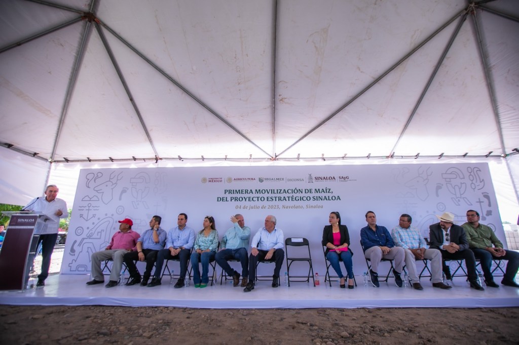 El director de SEGALMEX acudió a este evento acompañado de su equipo de colaboradores, entre ellos, la encargada del Programa de Compra de Maíz en Sinaloa, Ana Cristina García Almanza, mientras que al gobernador Rocha lo acompañaron el secretario de Administración y Finanzas, Enrique Díaz Vega; el secretario de Agricultura y Ganadería, José Jaime Montes Salas; el subsecretario de Agricultura, Ramón Gallegos Araiza, y como invitados el presidente de la Comisión de Desarrollo Rural del Congreso del Estado, diputado Serapio Vargas Ramírez, y como anfitriona, la alcaldesa de Navolato, Margoth Urrea Pérez.