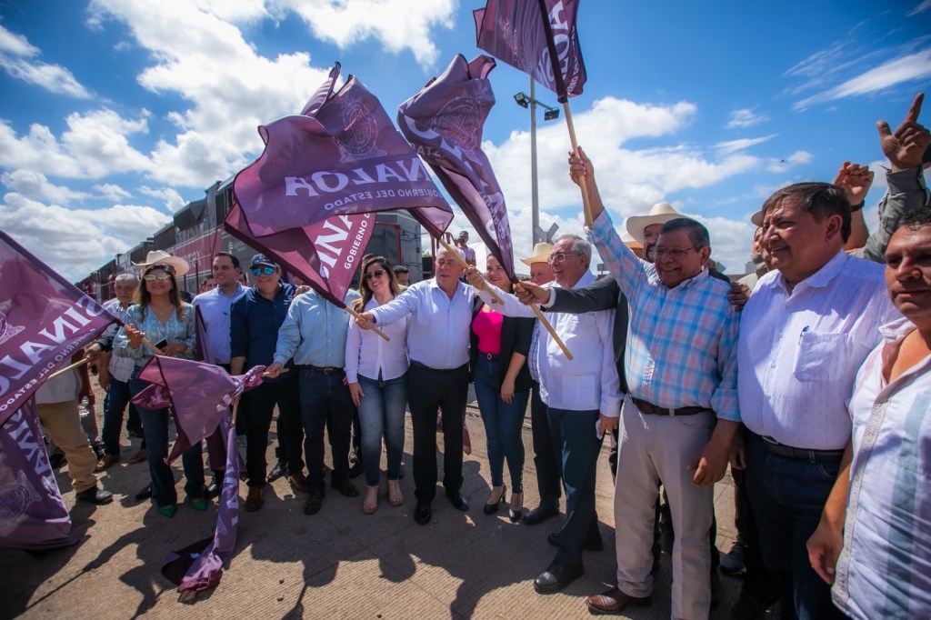 El gobernador Rocha y el director de SEGALMEX dieron el banderazo simbólico a un tren que partió desde Navolato.
