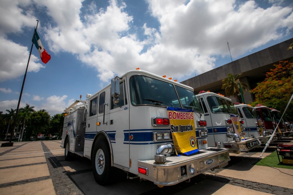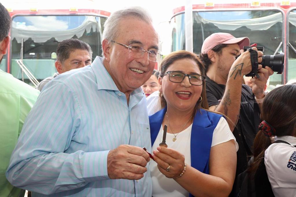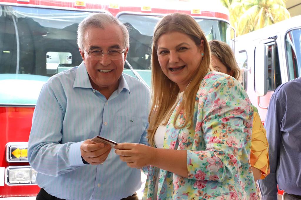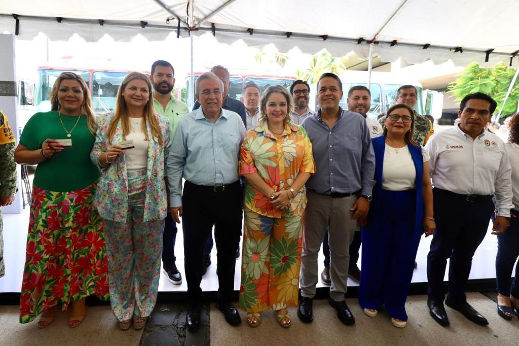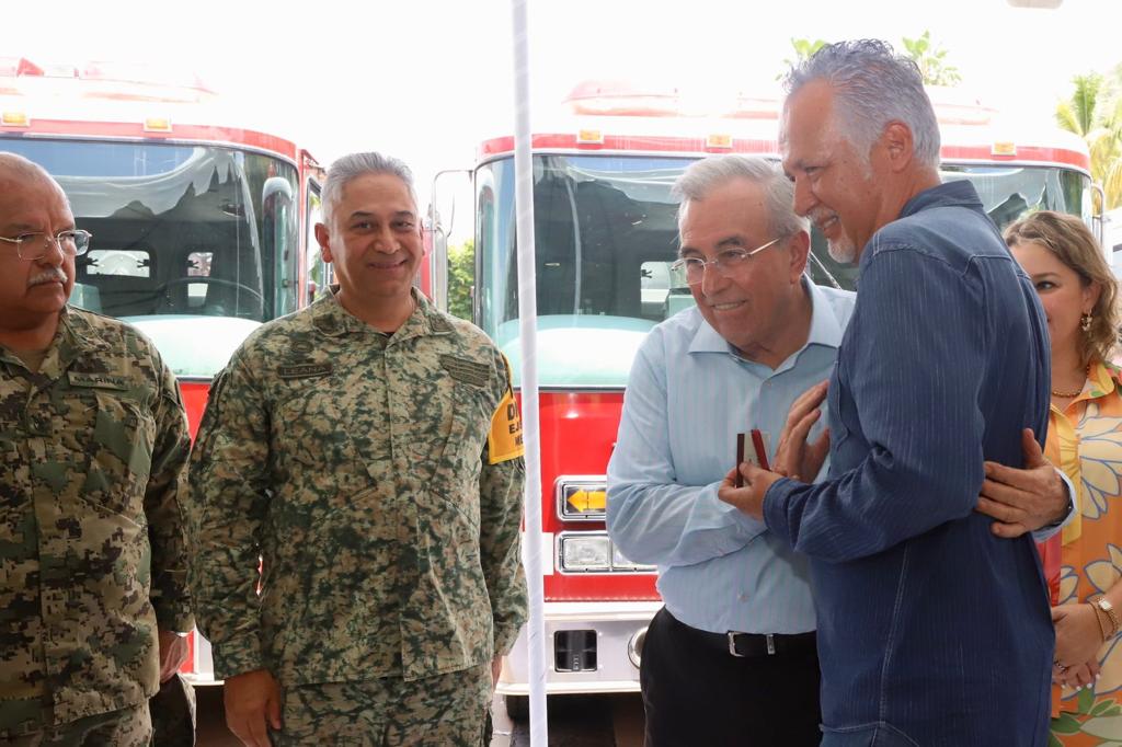 Además de la presencia de José Paz López Elenes presidente municipal de Badiraguato, Amalia Gastélum Barraza presidenta municipal de Choix, Raúl Díaz Bernal presidente municipal de Concordia, Carla Úrsula Corrales Corrales presidenta municipal de Cósala, Claudia Liliana Valdez Aguilar presidenta municipal de Rosario y Octavio Bastidas Manjarrez presidente municipal de San Ignacio, a quienes se les hizo entrega de los camiones de bomberos y el equipo de rescate.