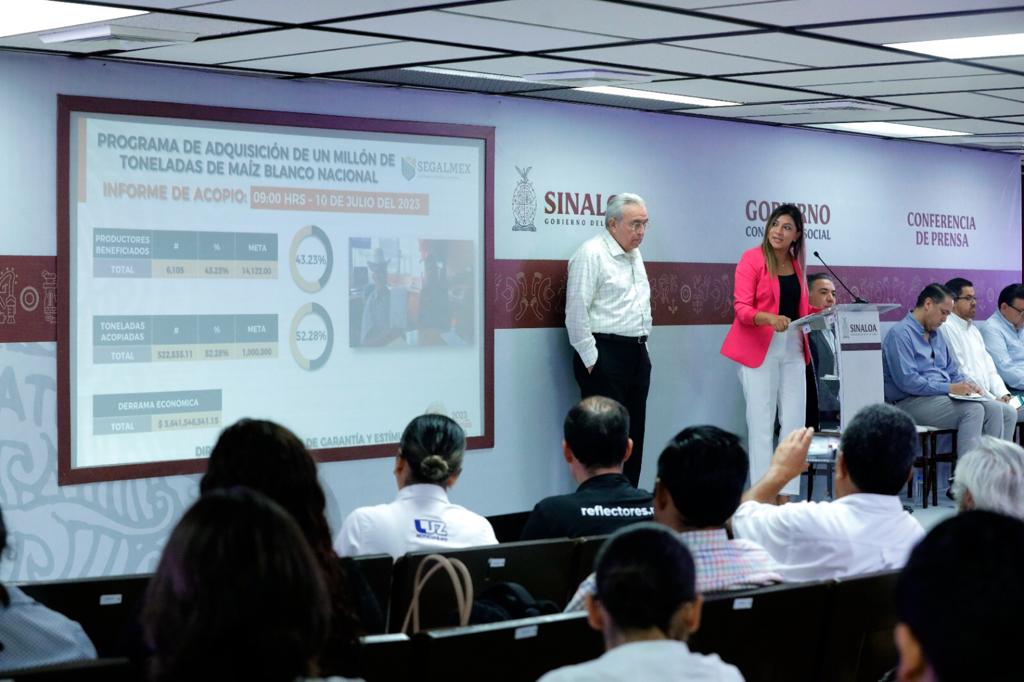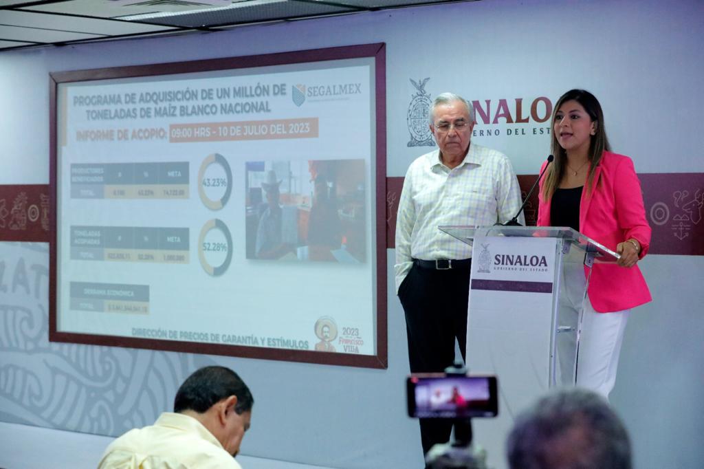 La directora del Programa de Compra de Maíz en Sinaloa, de SEGALMEX, Ana Cristina García Almanza, dio a conocer que el reporte de la primera etapa de dicho esquema, que es la compra del primer millón de toneladas, de las 1.5 millones de toneladas que serán en total, representa un avance del 52.28 por ciento, con la compra de 522 mil 835 toneladas a 6 mil 105 productores.