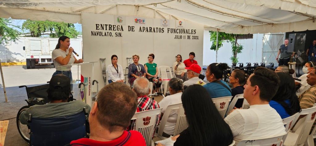 Navolato, Sinaloa, a julio de 2023*.- La Presidenta Municipal de Navolato, Margoth Urrea Pérez, junto a la Directora de la Beneficencia Pública en Sinaloa, Alma Rosa López López, hizo entrega de 43 aparatos ortopédicos a familias de diversas comunidades del municipio.
