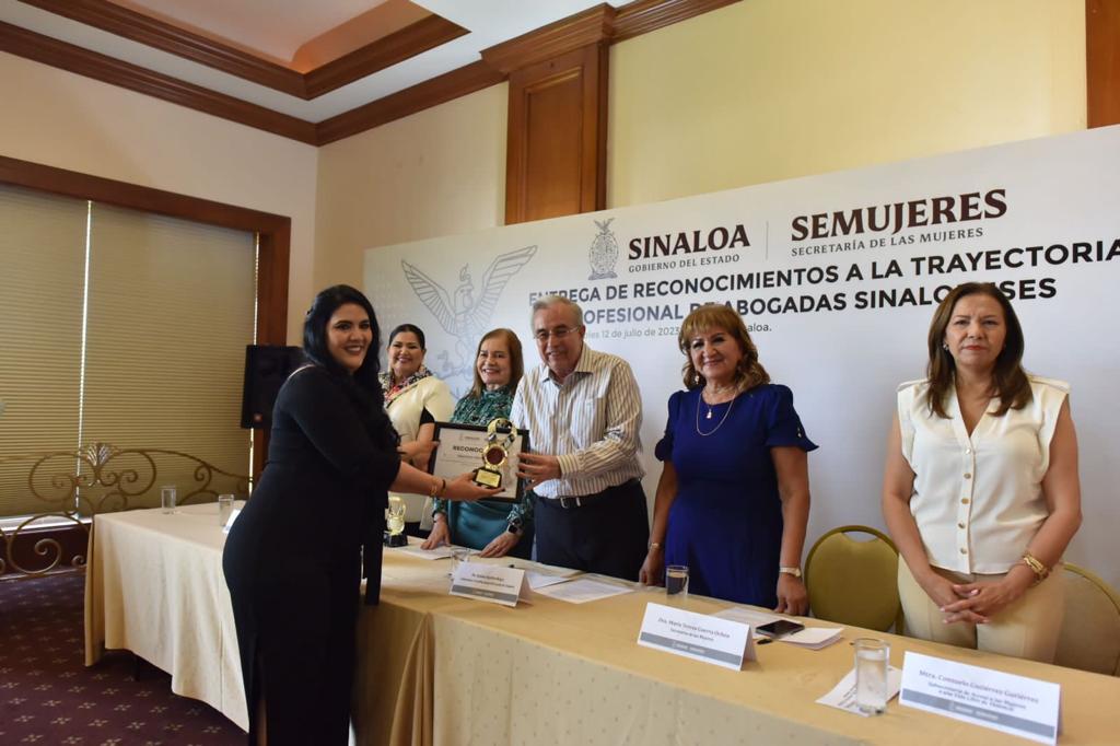 Además de los dos reconocimientos póstumos, también se hicieron entrega de reconocimientos a la fiscal general del Estado, Sara Bruna Quiñónez Estrada; a la ex jueza María Bárbara Irma Campuzano Vega, quien además fue la primera mujer jueza del ramo civil; a la ex magistrada Myrna Cynthia Medina Cárdenas; a la abogada María del Rosario Gastélum; a Marlene Medina López, quien desde el año 2017 a octubre del 2021 fue Coordinadora General de la Unidad Especializada en Atención a Mujeres Víctimas del Delito, la Familia y Grupos en Situación de Vulnerabilidad de la Fiscalía General del Estado.