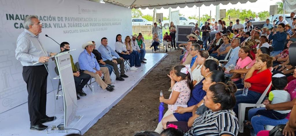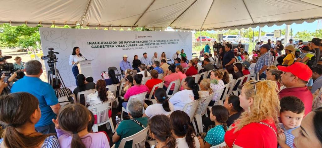 La primera obra de pavimentación que se inauguró fue la segunda etapa de la carretera Villa Juárez- Las Puentes- Bataoto, donde la Alcaldesa Margoth Urrea Pérez agradeció al gobernador todo su apoyo a las familias navolatenses.