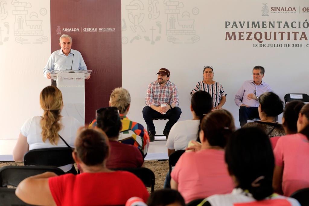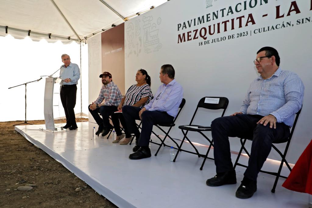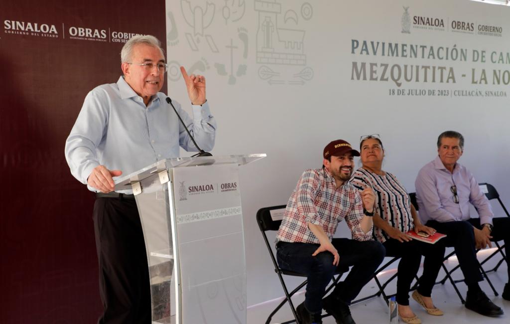 Culiacán, Sinaloa, a Julio de 2023.-* Para facilitar traslados, mejorar la seguridad vial y otorgar mayor impulso a la Sindicatura de Imala, cuyo pueblo señorial cada vez es más visitado por turistas foráneos y locales, el Gobernador Rubén Rocha Moya inauguró esta tarde la obra de pavimentación del camino que conduce de Mezquitita a La Noria, comunidades muy cercanas al casco urbano de la capital del estado.