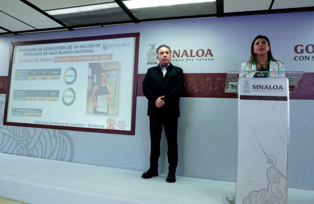 A su vez, la encargada del programa de compra de maíz en Sinaloa por parte de SEGALMEX, Ana Cristina García Almanza, informó que al corte de este lunes 24 de julio, se tiene un avance del 73 por ciento, al haberse acopiado ya 731 mil 811 toneladas, las cuales se compraron a 8 mil 558 productores, de un padrón de 14 mil 122 productores que se inscribieron en el programa.