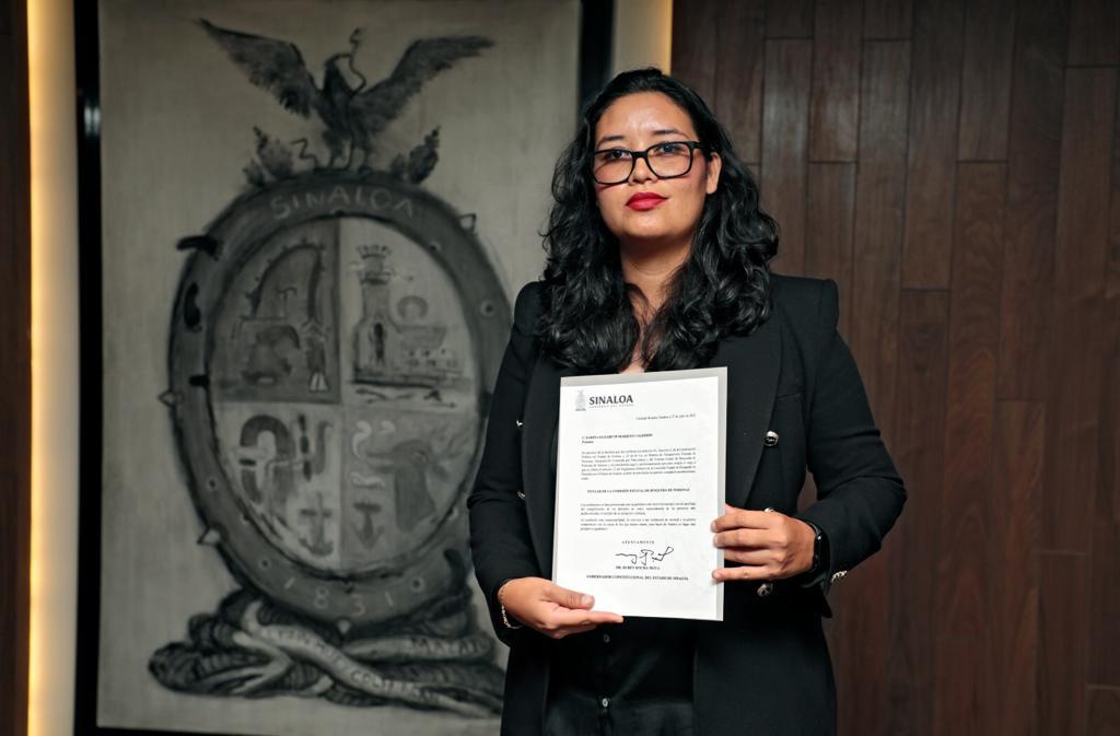 Culiacán, Sinaloa, a julio de 2023.- El gobernador Rubén Rocha Moya designó a la licenciada en Criminalística Karina Elizabeth Márquez Calderón como titular de la Comisión Estatal de Búsqueda de Personas en el Estado de Sinaloa, luego de una valoración que se hizo de los ochos candidatos que se registraron en la convocatoria emitida en días pasados para ocupar este cargo que había quedado vacante.