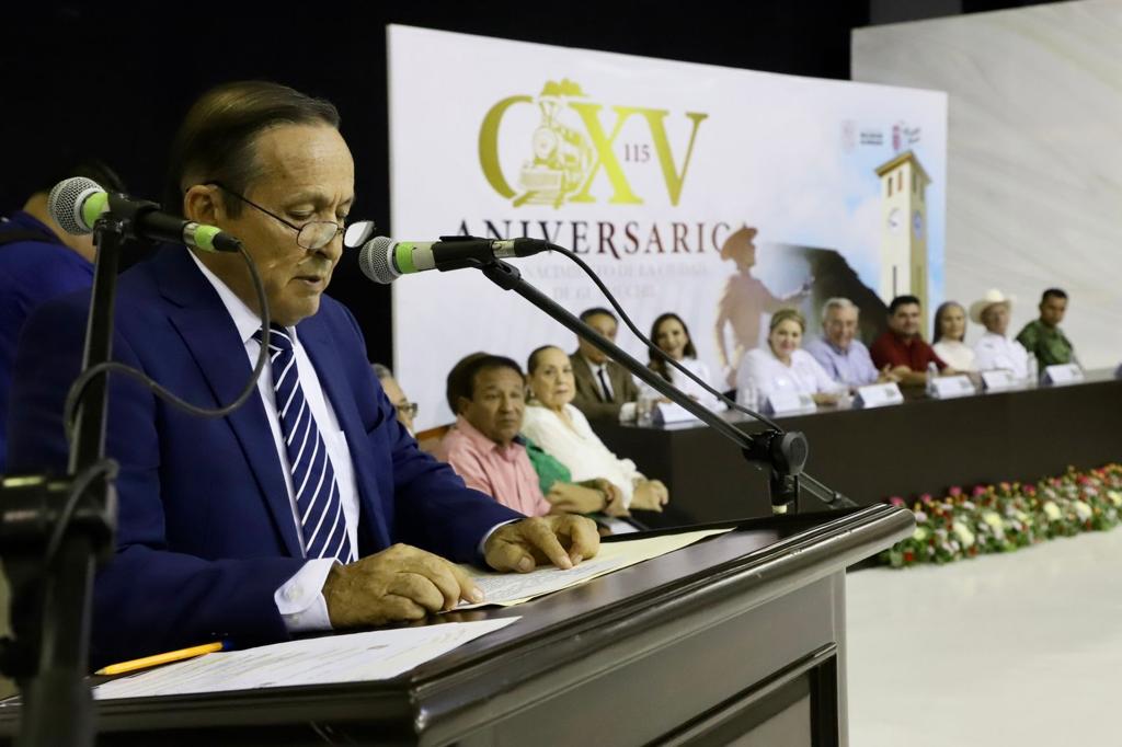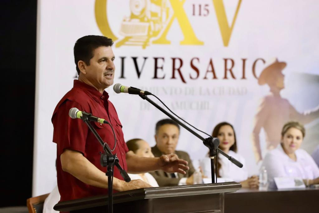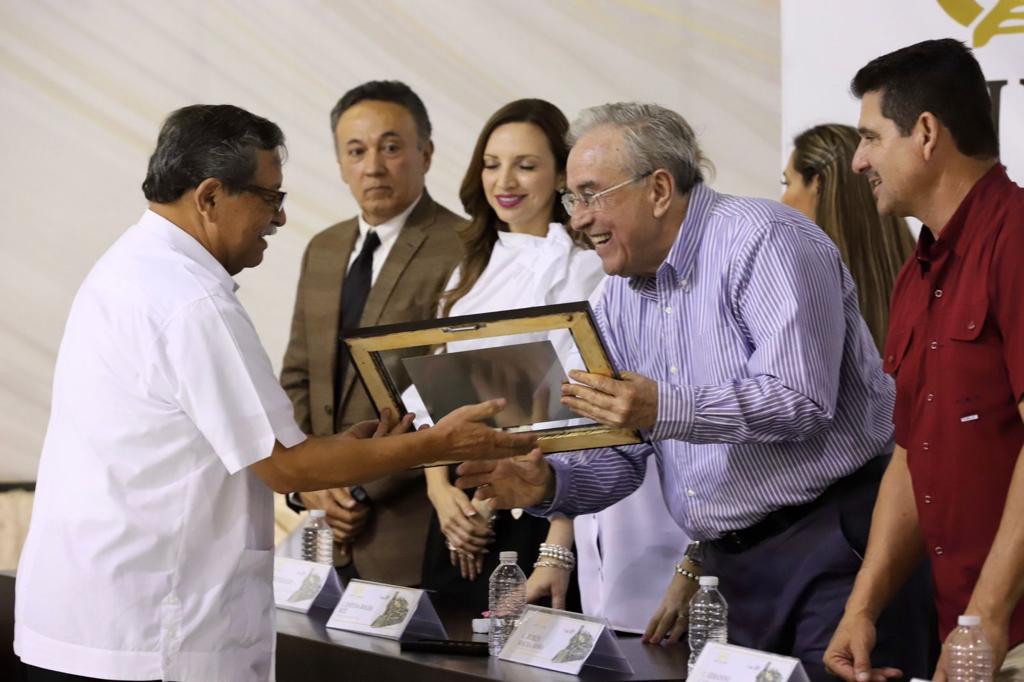 El gobernador felicitó a los homenajeados y mencionó que él es de Guamúchil, ya que tiene un gran amor por la ciudad al haber vivido tanto tiempo en el lugar.