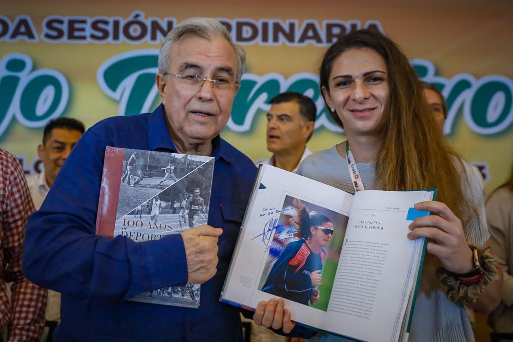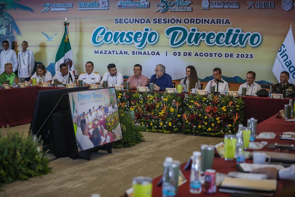 El mandatario estatal inauguró la segunda sesión ordinaria del Consejo Directivo del Sistema Nacional de Cultura Física y Deporte en Mazatlán, acompañado de la directora de CONADE Ana Gabriela Guevara.