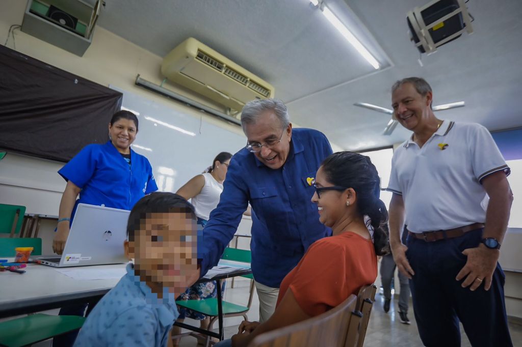 Mazatlán, Sinaloa, a Agosto de 2023.- Con el propósito de agilizar el proceso para las familias con algún integrante que requiere apoyo para tratar el autismo y la discapacidad motriz, a través del Centro de Rehabilitación e Inclusión Infantil Teletón que se inaugurará próximamente en Mazatlán, esta mañana el Gobernador Rubén Rocha Moya realizó un recorrido de supervisión en el Instituto Cultural de Occidente, centro educativo que funge como sede temporal para las Jornadas de Valoración e Incorporación de los interesados en obtener cupo para el CRIT, quienes participaron en una fase inicial de inscripción telefónica.