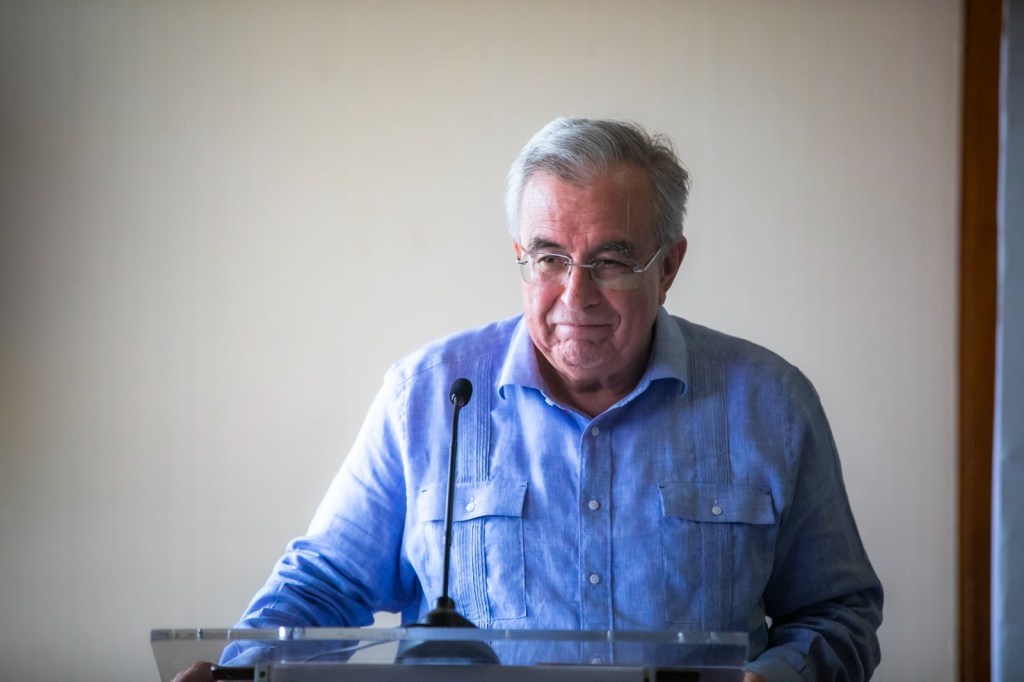 Acompañado por la organizadora del evento, la secretaria de las Mujeres, Tere Guerra Ochoa; y por la presidenta del Sistema DIF Sinaloa, Eneyda Rocha Ruiz, el gobernador Rocha le dio la bienvenida a la comisionada nacional para Prevenir y Erradicar la Violencia contra las Mujeres, Fabiola Alanís Sámano; y a la comisionada nacional Ejecutiva de Atención a Víctimas, Martha Yuridia Rodríguez, quienes asistieron invitadas a esta reunión de trabajo.