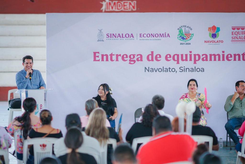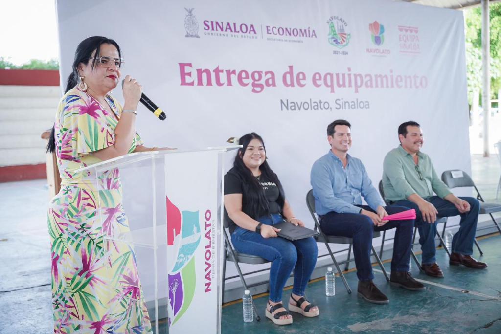 • El programa “Equipa Sinaloa” llegó a Navolato para hacer entrega de 117 equipos a 32 mujeres y hombres emprendedores y microempresarios con el objetivo de que generen negocio y recursos económicos que beneficien a sus familias.