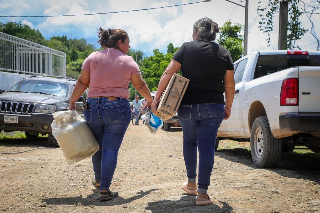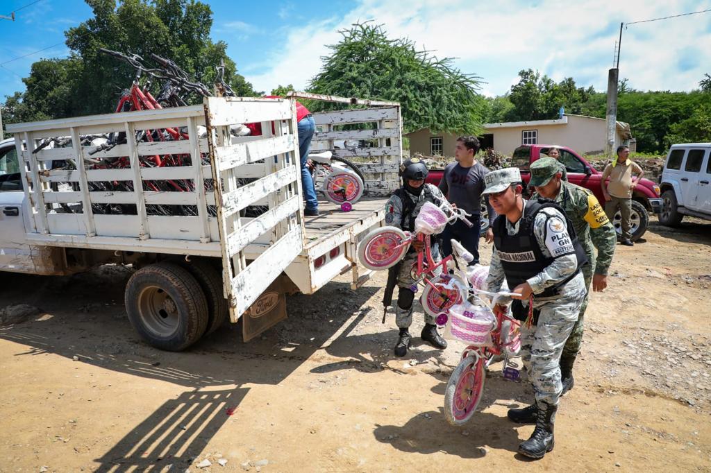 Los apoyos que se entregaron fueron: despensas, estufas ecológicas con su tanque de gas, colchonetas, abanicos, kit de limpieza, catres, agua para consumo humano, bultos de láminas y para las niñas, niños y jóvenes triciclos y bicicletas.