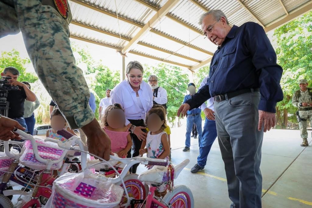 Junto al gobernador de Sinaloa Rubén Rocha Moya la doctora Eneyda Rocha lleva apoyos de asistencia social a la población afectada de la comunidad de San José de las Delicias en el municipio de Sinaloa.