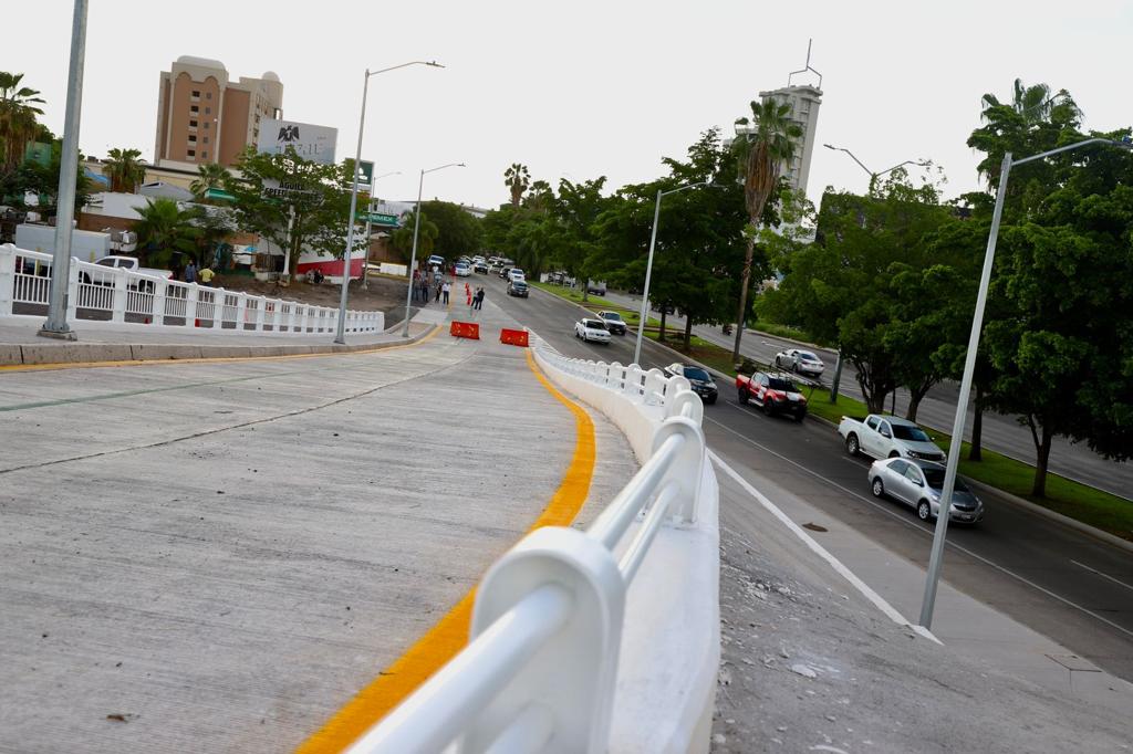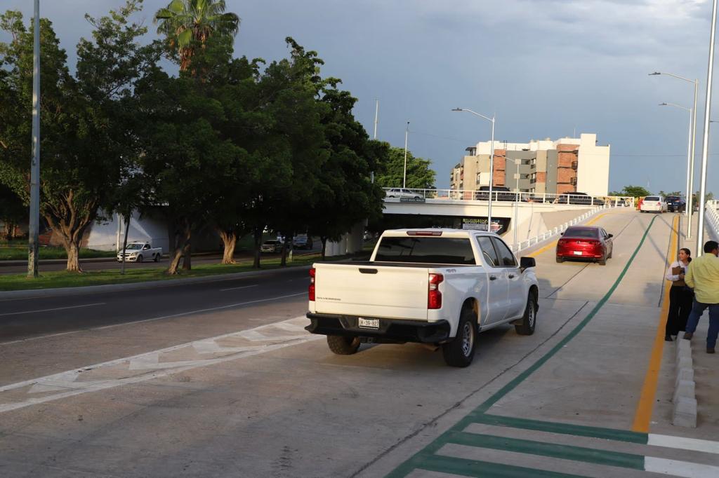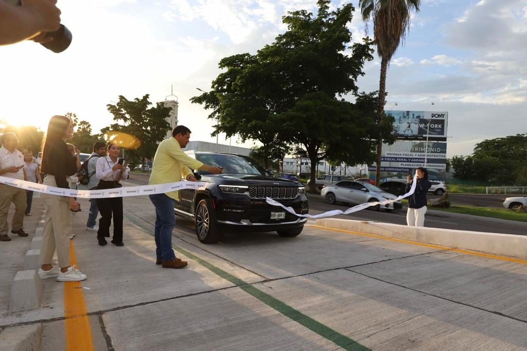 En un sencillo acto, el gobernador Rubén Rocha Moya, acompañado por el nuevo secretario de Obras Públicas, Joaquín Alberto Landeros Güicho, abrió el paso a los vehículos sobre esta nueva gaza que viene a servir como acceso a la avenida Obregón hacia el sur viniendo desde el malecón nuevo, con sentido hacia el oriente, justo metros delante de conocido centro comercial.