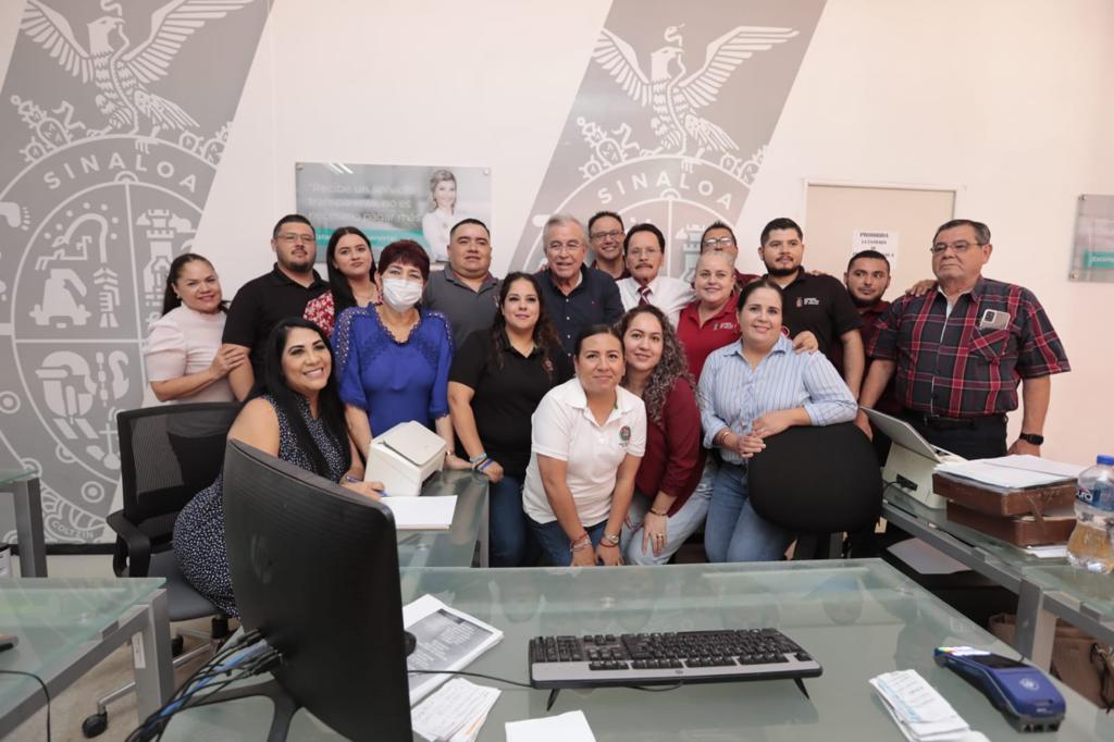 Guasave, Sinaloa, a Agosto de 2023.- Reconozco el compromiso que demuestran con sus tareas cotidianas y les reitero mi apoyo a sus funciones, expresó el Gobernador Rubén Rocha Moya a los colaboradores de la Unidad de Servicios Estatales de Guasave, donde realizó un recorrido acompañado de los Alcaldes de Guasave y Culiacán, Martín Ahumada Quintero y Juan de Dios Gámez Mendívil, respectivamente, quienes fueron amablemente guiados por Mariela Báez López, delegada de la unidad administrativa, que condujo a la comitiva por los diferentes espacios laborales, como parte del compromiso establecido con el Sindicato de Trabajadores al Servicio del Estado para visitar las oficinas gubernamentales.