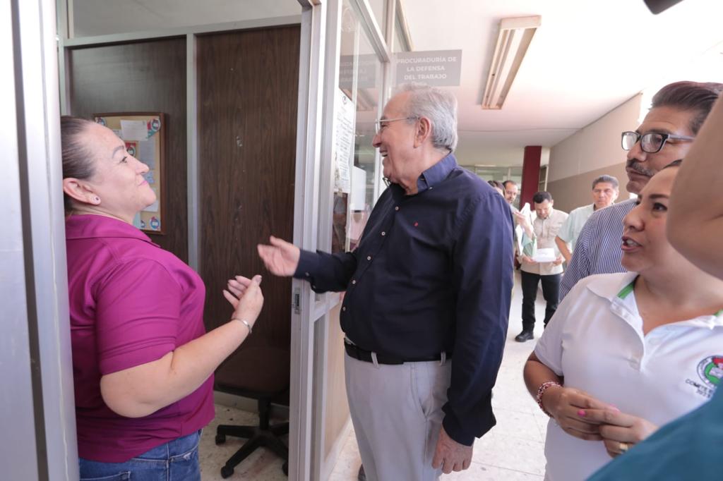 Durante el recorrido, los trabajadores no ocultaron su sorpresa y satisfacción al comprobar que Rocha Moya personalmente les preguntaba cuáles eran las necesidades más apremiantes para cumplir cabalmente con sus funciones, recibiendo peticiones de reemplazo de aires acondicionados, reparación de techos y gestiones para nuevo mobiliario de oficina, las cuales fueron recibidas en ese momento por Francisco Barrón Aguayo, Director de Servicios Generales, quien por instrucciones directas del mandatario estatal, se comprometió a brindar resolución inmediata.