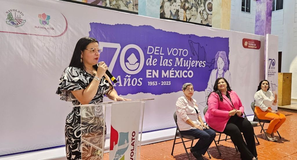 “En 41 años en Navolato es la primera vez que una mujer es electa como presidenta municipal y esa es nuestra querida Margoth, y creo que en Navolato el 70 Aniversario del Voto de la Mujer habla precisamente de la importancia que tiene que mujeres, mujeres que tengan el interés de participar, que deseen aportarle a la comunidad del municipio tengan los espacios para la participación política en todos los partidos, que tengan la confianza y quien tengan la convicción también de que las mujeres somos buenas para administrar, para estudiar, para dar clases, para ser ingenieras, para ser pilotos aviadores, para conducir un municipio como éste y para dar buenos resultados”.
