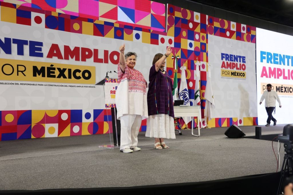 Las dos aspirantes al cargo de responsable de la construcción del Frente Amplio por México, Beatriz Paredes Rangel y Xóchitl Gálvez Ruiz, conversaron hoy en el quinto y último Foro Regional de este organismo, que se realizó en Mérida, Yucatán, en torno al tema: “El México de las mujeres”.