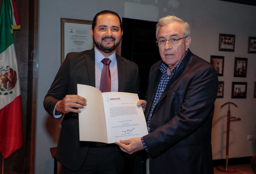 Culiacán, Sinaloa, a agosto de 2023.- El gobernador Rubén Rocha Moya nombró como secretario ejecutivo de la Coordinación General de Desarrollo Tecnológico y Proyectos Especiales a Edwin Favela Sánchez, quien sustituye en el cargo al ahora secretario de Obras Públicas, Joaquín Alberto Landeros Güicho.
