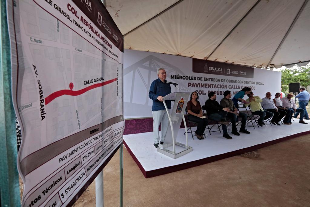 “Gobernador, otro miércoles más donde estamos haciendo entrega de estas obras con sentido social, ya se está haciendo una buena costumbre, ¡imagínense que todos los miércoles del año estemos entregando obras! Tendríamos otro Culiacán”, dijo.