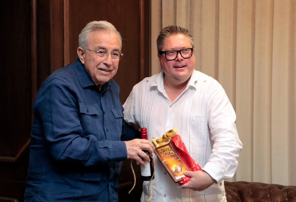 Antes de despedirse, el gobernador Rocha y el Cónsul Matt Roth, intercambiaron algunos presentes como símbolo de cordialidad y de trabajo mutuo, por venir.