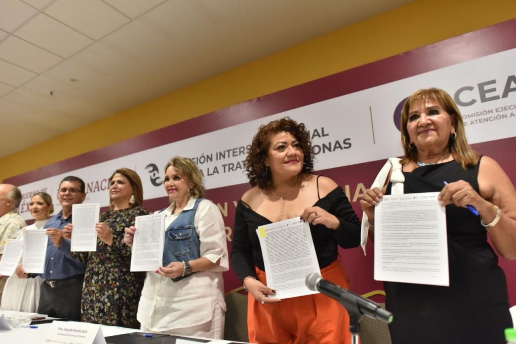 Por su parte Martha Yuriria Rodríguez Estrada, comisionada ejecutiva de la CEAV destacó que su equipo ha acompañado de manera integral (psicológica, jurídica, empoderamiento, educación, atenciones médicas, vinculación, etc.) a mil 034 víctimas de trata, ofertando cerca de 3 mil 500 servicios y en dos años se tienen 90 sentencias condenatorias en casos de trata de personas, por lo que esta firma es significativa para perseguir este delito.