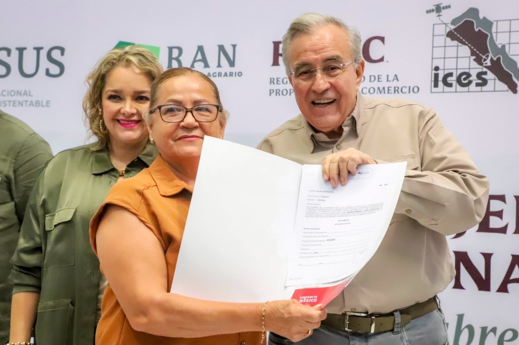 Por su parte, la secretaria del Bienestar y Desarrollo Sustentable, María Inés Pérez Corral, se refirió al avance que se tiene en la expedición de títulos de propiedad, en ocasión de la entrega de cinco certificados a igual número de mujeres de los ejidos El Cubilete y Norotillos, Guasave.