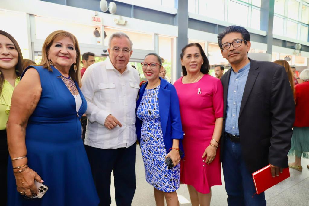 Al gobernador Rocha también lo acompañaron su hija, la presidenta del Sistema DIF Sinaloa, Eneyda Rocha Ruiz, y varias secretarias de su gabinete, como la secretaria de Turismo, Estrella Palacios Domínguez; la secretaria de Pesca y Acuacultura, Flor Emilia Guerra Mena; la secretaria de Transparencia y Rendición de Cuentas, María Guadalupe Ramírez Zepeda; y la secretaria del Despacho del Ejecutivo, Cinthia Gutiérrez.