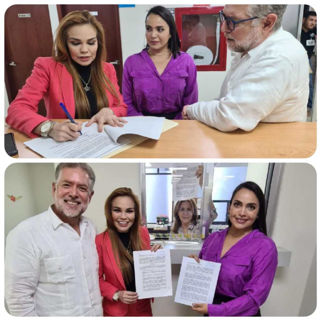 Culiacán, Sin. , octubre de 2023.- La presidenta del PRI Estatal en Sinaloa, Paola Gárate Valenzuela, acompañada de la líder de las mujeres priistas en Sinaloa, Irma Moreno y el coordinador de los diputados del PRI, Luis de la Rocha, presentaron ante Oficialía de Partes del Congreso local, dos iniciativas a favor de las féminas.