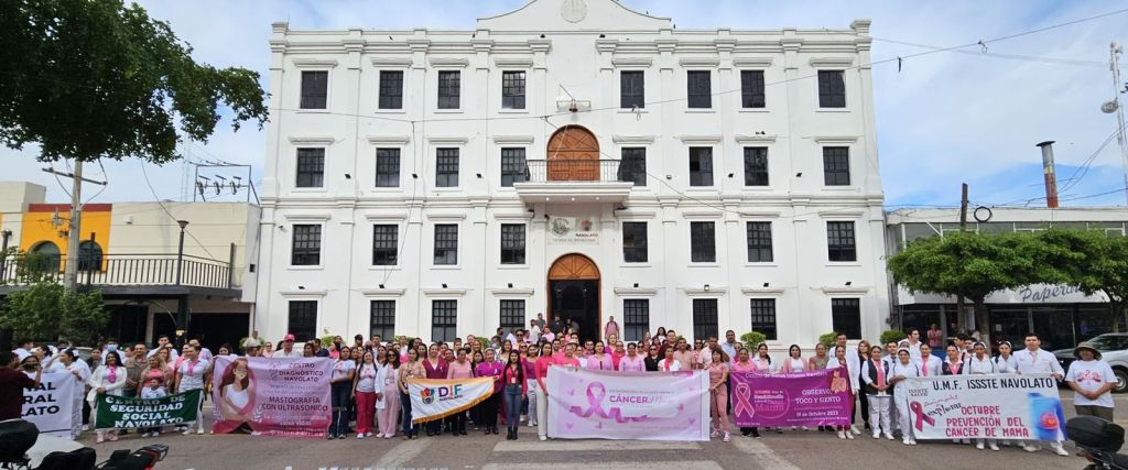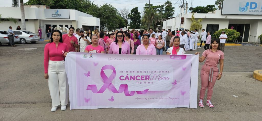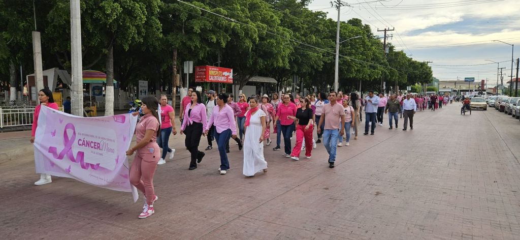 Navolato, Sinaloa, a octubre de 2023.- La Presidenta Municipal de Navolato, Margoth Urrea Pérez, encabezó una marcha en conmemoración al Día Internacional de la Lucha Contra el Cáncer de Mama, a la cual se sumaron más de 200 navolatenses con la finalidad de concientizar sobre la detección oportuna de esta enfermedad.