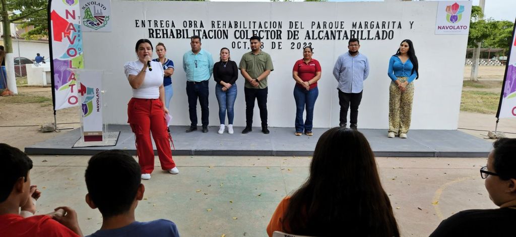 Posteriormente la Presidenta Municipal de Navolato dio el banderazo de inicio de dos obras: Rehabilitación del colector de aguas residuales y rehabilitación de línea de agua potable en la calle Domingo Rubí, entre avenida General Ramón Corona y avenida Primera, colonia Popular, sindicatura de Licenciado Benito Juárez, donde se benefician 1780 personas con recursos que llegaron del Gobierno Federal para obras con sentido social.